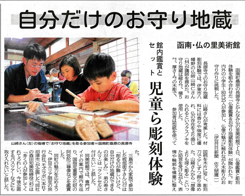 伊豆日日新聞にて、6月1日(日)に開催された「かんなみ仏の里美術館仏像鑑賞&お守り地蔵彫刻体験」についての記事が掲載されました。